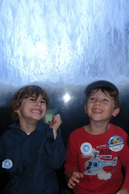 Below: Isaac and a friend at their behind-the-scenes tour of the aquarium - only available to 6-year-olds and up. Notice the birthday button.